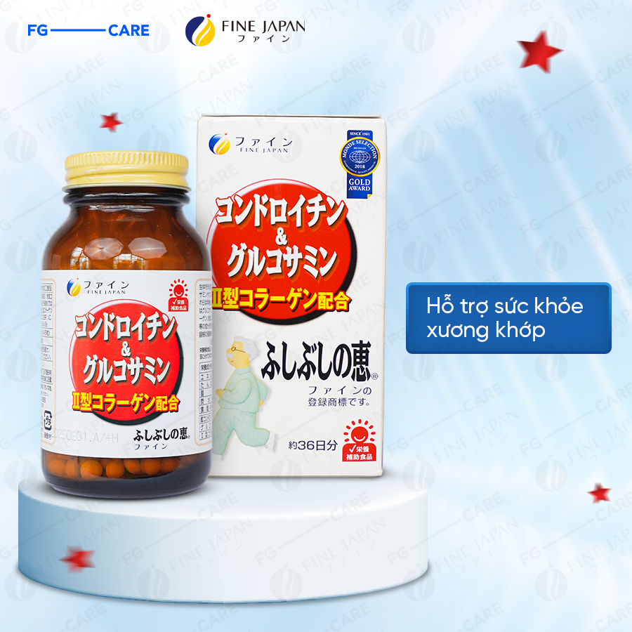 Viên uống xương khớp Chondroitin & Glucosamine của Fine Japan chứa Chondroitin cá mập và chiết xuất Glucosamin từ cua cùng nhiều thành phần khác như bột tảo bẹ nướng giàu khoáng chất, isoflavone đậu nành giúp duy trì sức mạnh của xương.