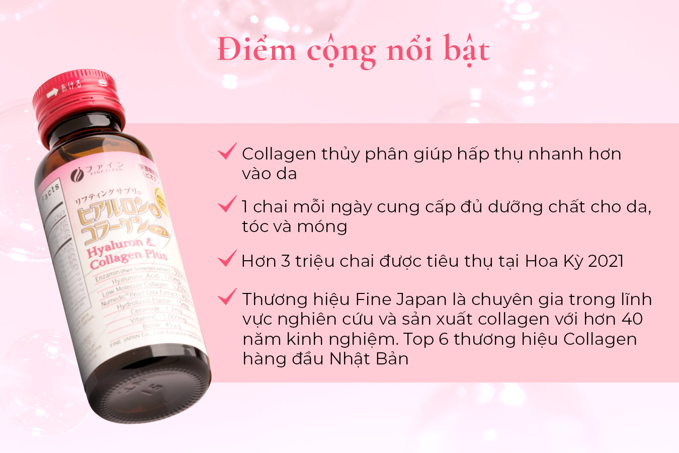 Là sản phẩm Collagen bán chạy nhất tại Nhật Bản, Hyaluron & Collagen Plus là sự kết hợp hoàn hào giữa các thành phần tự nhiên thiết yếu, bao gồm collagen thủy phần, vitamin C, hyaluronic acid, biotin, elastin và hạt ý dĩ, giúp tổi ưu hóa công dụng làm đẹp cho người dùng.